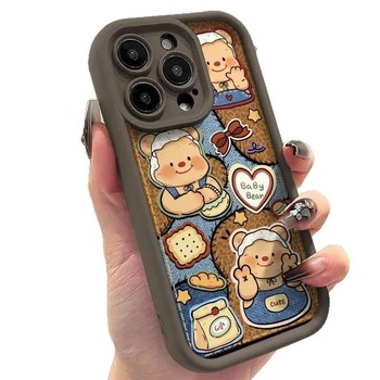 人気ブレッドベアキューティーベア漫画の電話ケースIphoneに適した16 15 14カウボーイバターベア羊革バックカバー